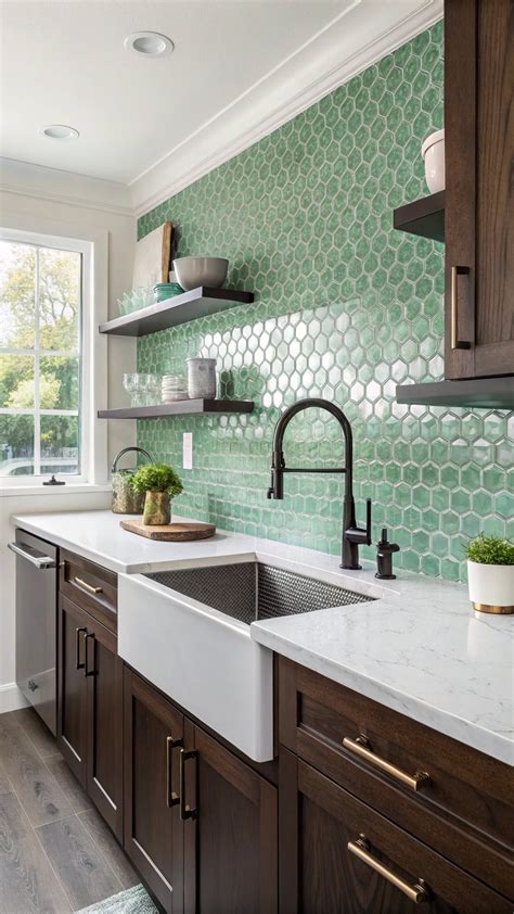 Green Kitchen Backsplash in White Cottage Kitchen from www.pinterest.com