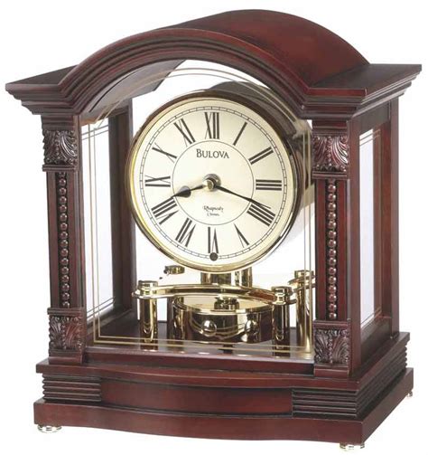 Standout elegance for wall or mantel clocks, each with a choice of melodies that add a touch of old world charm and sophistication. The bulova b1845 durant mantel clock is an anniversary style mantel clock in a solid wood case with an old world walnut finish. The angled ribbed side columns are accented by a swinging matching wooden pendulum.
