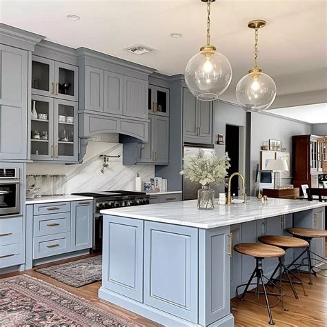 Blue Gray Kitchen Decor - From moody navy cabinets to soft dove. These blue gray kitchen cabinet colors are perfect for any design style, from modern farmhouse to coastal chic. This is a very popular color scheme loved by many homeowners and designers. Transform your kitchen into a stylish retreat with these 15 grey and blue kitchen ideas! Discover how blue gray kitchen cabinets can.