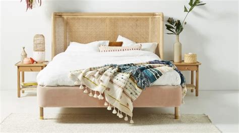 Boho Style King Bed Frame . It's hard to find a quality full rattan bed frame but this one from the urban outfitters site is beautiful! Wicker, rattan and wood bed frame options in all sizes along with more eclectic pieces like plus velvet headboards for your perfect cozy bohemian bedroom.