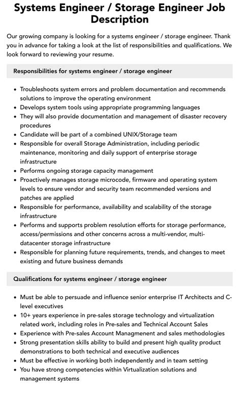 Systems Engineer Engineering Systems Job Description Velvet Jobs