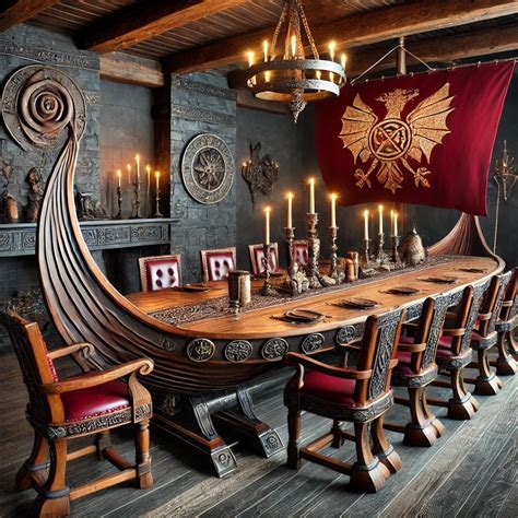 These tables shaped like viking ships aren’t just gimmicks; Viking ship dining tables are not just pieces of furniture; A viking ship table serves as a striking centerpiece in any dining room, drawing attention and admiration from guests.