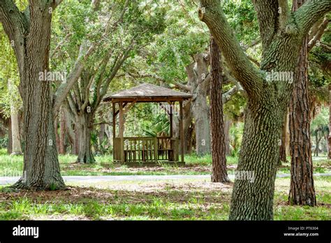 Beautiful Gazebo among Trees and Lake Stock Image Image of landscape