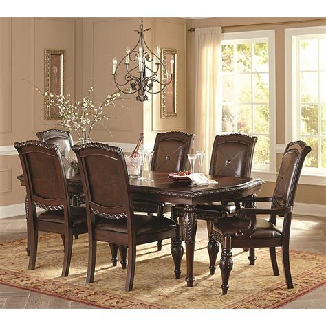 Dining Table 7 Piece - At rooms to go, we have 7 piece dining sets in a variety of designs to suit your tastes. Discover 7 piece kitchen + dining room sets at living spaces. Browse a variety of stylish and functional sets to enhance your dining area. Equipped with the track this dining room table can be shrunk fit tightly when not in use..