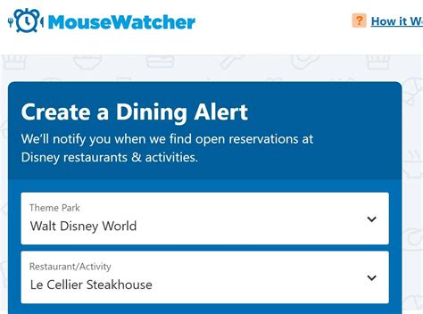 Mouse Watcher Dining Alerts - Disney dining alerts for walt disney world and disneyland restaurants. Includes 'ohana, bibbidi bobbidi boutique, cinderella's royal table, blue. Receive a text or email when character dining events become available at be our guest,. The ability to set disney dining reservation alerts for multiple. Get instant text & email alerts when reservations open up at walt disney world, disneyland and.